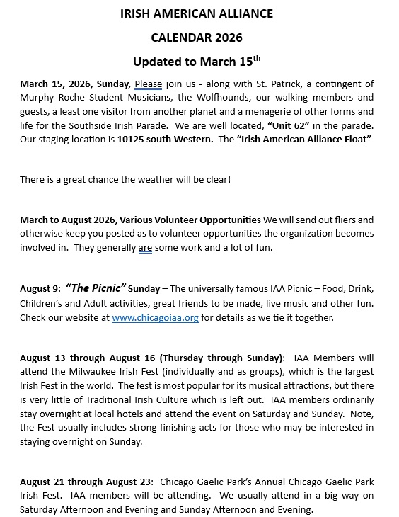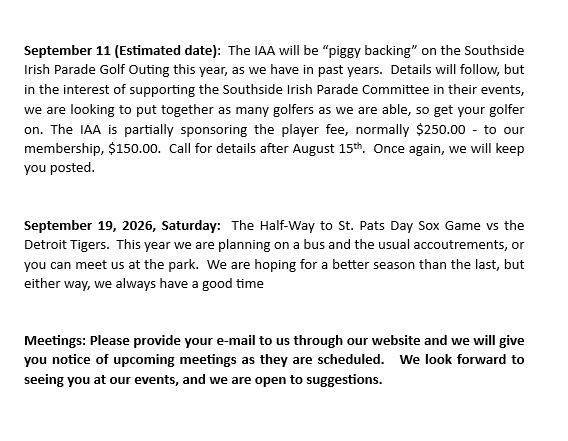 IAA Calendar of Events 2026.